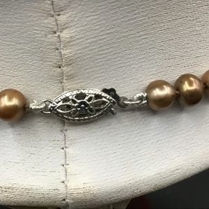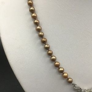 .5 cm Bronze Gold Color Natural Pearls Necklace 9.5 drop and 18” Long.