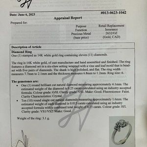 14k White gold ring, Size 6 with REAL Diamonds. Comes with appraisal