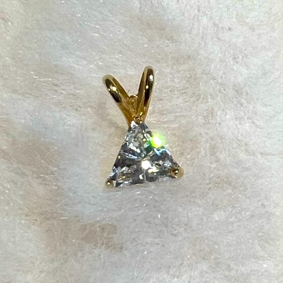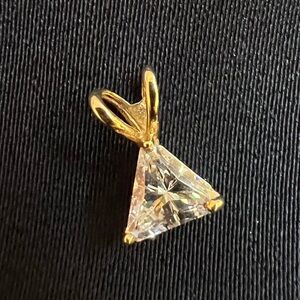 This solitaire pendant dazzles! It has a ton of sparkle! The stone is in a less common triangle cut, setting it apart from other solitaire pendants.