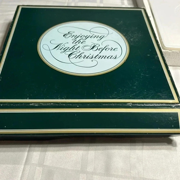 Excellent condition ! Please zoom up close. But I could find no dents or scratches of any kind. Even on the back of the plate! Which is 40 years old !!!But the box on the other hand is in used condition. But with the styrofoam plate holder. It will keep the plate secure. ! The plate is about ENJOYING THE NIGHT BEFORE XMAS ! The tree is trimmed and now the children are reading their favorite Christmas stories . Beautiful to keep for yourself or give as a vintage gift for the special person .