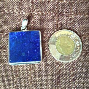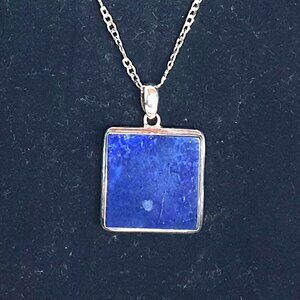 Elevate your style with this bold vintage pendant, showcasing a striking square-cut genuine Lapis Lazuli in a rich royal blue hue. Expertly framed in solid 925 sterling silver, this statement piece blends timeless elegance with a powerful, classic charm.