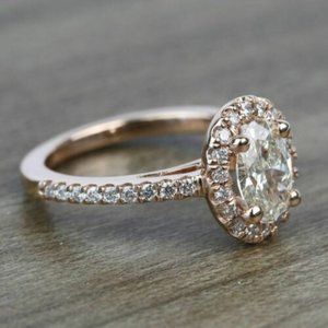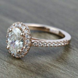 1.50 Ct Oval Diamond Halo Wedding Ring VVS1/D Moissanite Gemstone Rose Silver
