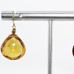 $1,500 14K Gold 28.00CT Natural Orange Citrine Solitaire Dangle Earrings