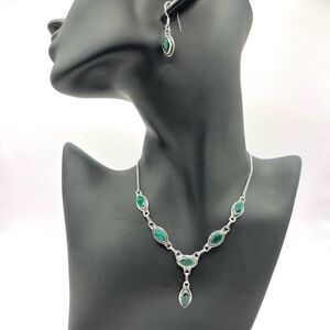 This exquisite vintage jewelry set features a stunning combination of genuine green emerald ( earth-mined) set on 925 sterling silver!