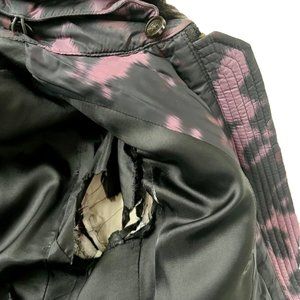 “Poor Condition, outer rips at underarms, interior lining rips at underarms sleeves and interior pockets. Selling as is.”