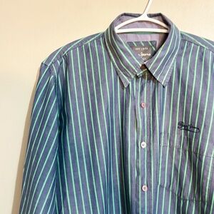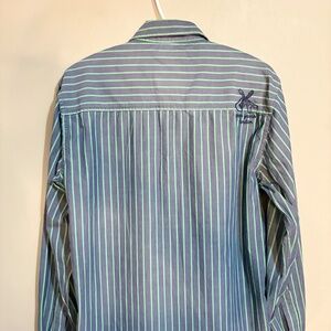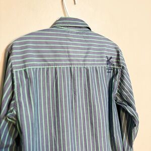 $15⚡️Vintage Pepe Jeans Purple Cotton Button Up Dress Shirt Green Stripes