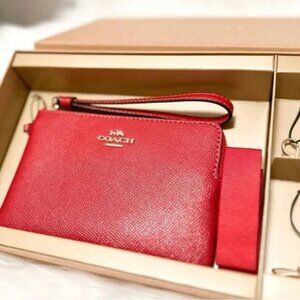 16 | 🍁Coach Corner Zip Wristlet with Charms Gift Set (Red)