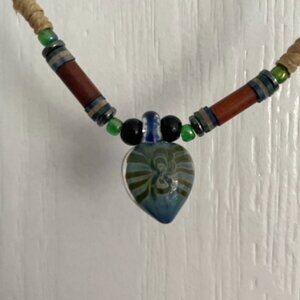 Lovely handmade Beaded Necklace with Glass Pendant 16"