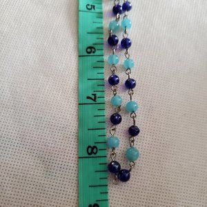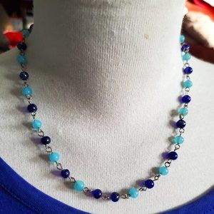 16" Silver Tone Blue Glass Bead Strand Necklace
