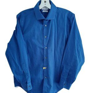 👔Calvin Klein Men's Cobalt Blue Long Sleeve Slim Fit Button Up Dress Shirt Size M, US16, 32/33.