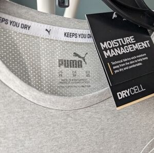 Casual heather gray tee featuring Puma's iconic logo. Soft and comfortable fabric.