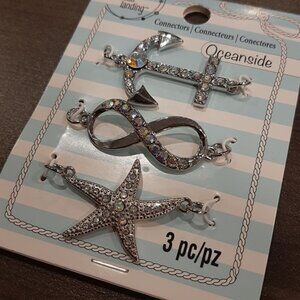 This collection features a variety of nautical-themed charms, including an anchor, cruise ship, whale tails, an Alaskan totem and a bracelet chain. The charms come in silver and gold finishes, perfect for creating beach and cruise-inspired jewelry pieces. There are also pendants for necklaces, and rhinestone embellished connector pieces.