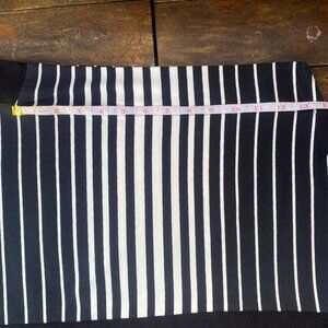 This poly/spandex super flow butterfly wing square blouse is in like new condition. The classic elegance of black and white stripe and bold verticale stripe come together to form a versatile and flattering blouse. A peek a boo sweetheart design, gives this classic piece a sensational appeal. Flattering, comfortable and quality.