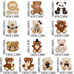 16pcs Plush Bear Embroidered Patches Cute Animal Appliques for Clothes and Bags