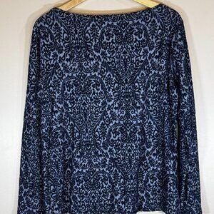 Elevate your everyday style with this LOFT long sleeve top, designed in a soft, comfortable fabric with a beautifully detailed damask pattern. The intricate black-on-gray design gives it a touch of elegance while still keeping it versatile and easy to wear.