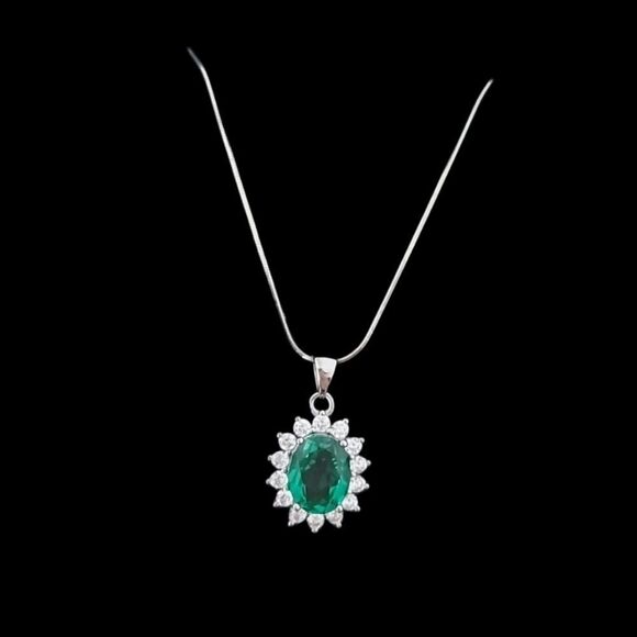 1.74 Carat Emerald Sterling Silver Diana Necklace