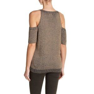 $175 SPLENDID Cold Shoulder Short Sleeve Wool Blend Sweater Camel/Charcoal ( M )