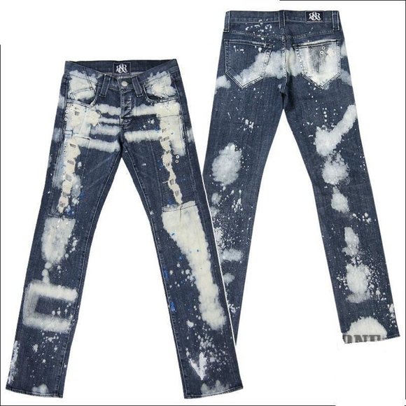 $178 ROCK & REPUBLIC Deadlock BLUE Splatter DENIM Torn JEANS Vaughn ( 28 )