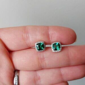 🌟Material: 1.8 Carat Emerald 925 sterling silver Earrings. 925 Stamp shown.