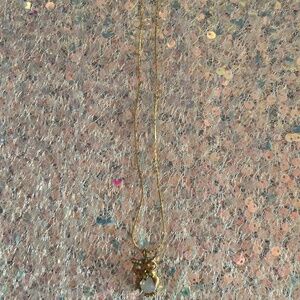 Owl Necklace with beautiful stones the chain is 18 Karat Gold filled It has a little bit of tarnished but it’s never been worn before