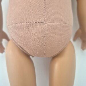 The photos without clothes show the condition. Some minor pulls on the fabric part of the body, minor discoloration on the left cheek on the last photo.