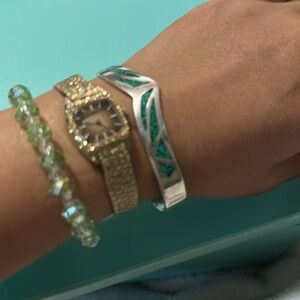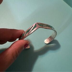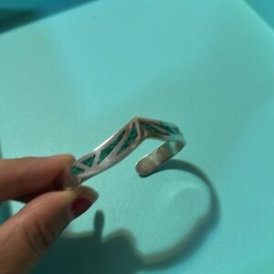 #18 STERLING TJ-67 INLAID TURQUOISE STONES CUFF BRACELET 925 MEXICO