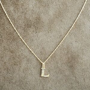Elegant silver rope style necklace featuring an 'L' initial pendant with 4 cubic Zirconias. Perfect for adding a personal touch to any outfit.
