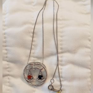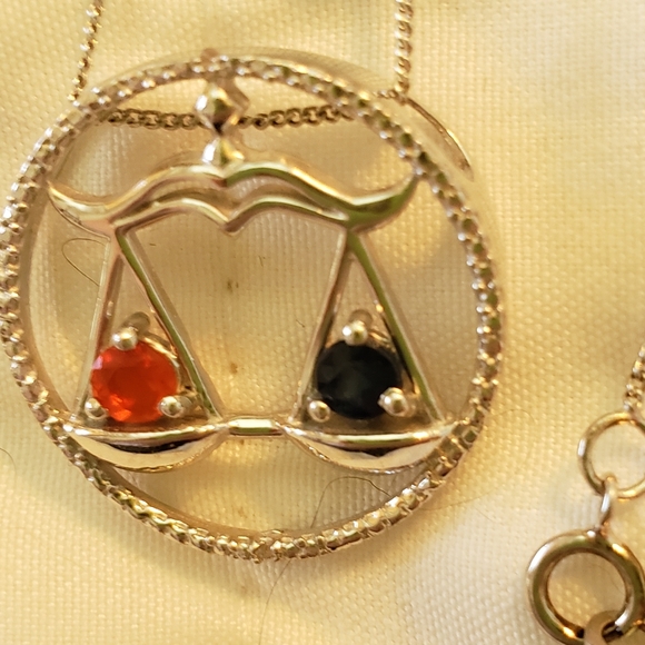 18 inch, 925 Libra Pendant, Fire Opal, Sapphire, Diamond, 4g, NWT