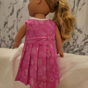 Your doll can be ready for summer in this beautiful pink wrap dress with button front closure, all you need to be fashionable this season. Sewn in a smoke free home. Doll not included