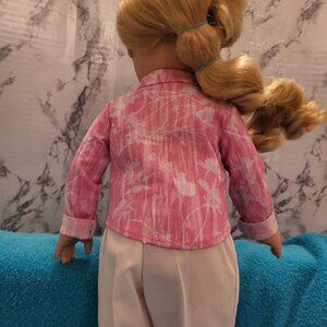 Ready for spring and summer. Long sleeved shirt and capri pants in cotton blends. Sewn in a smoke free home. DOLL NOT INCLUDED