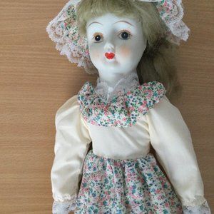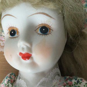 18" vintage 1970s girl doll porcelain head hand feet painted face blond hair eb