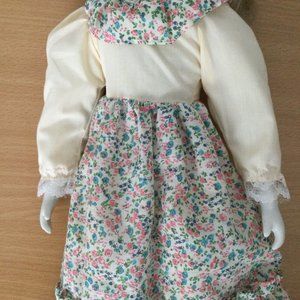 It is an 18" girl doll with black eyes, long blond hair, and black shoes. It is in very good condition, pre-owned.
