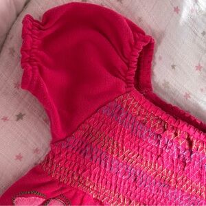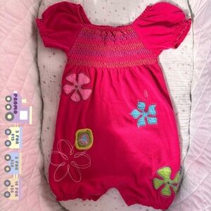 ⭒ 18-24M Little Tikes Pink Embroidered Flower Romper Ruffles Patches Buttons ⭒