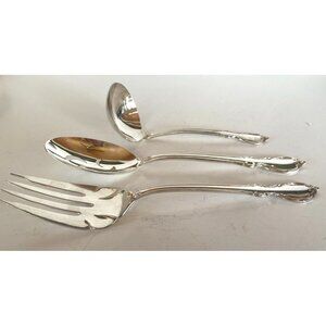 1847 Rogers Silverplate Reflection Pattern – 3 Piece Serving Set – Ladle, Pierced Spoon & Meat Fork