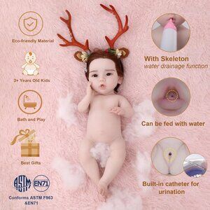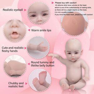 Dolls Size Cute silicone reborn doll: Height:18.5inch, Weight:6.9lbs. This product does not include clothing accessories. There will be slight production marks on the body edges and head of the doll, which are inevitable during the production process.Please rest assured that these will not have any effect on the use of the doll.