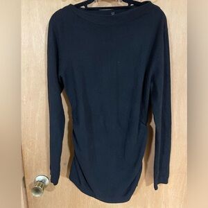 Long sleeves, one-shoulder, rushing details on the side , black 100% cashmere
