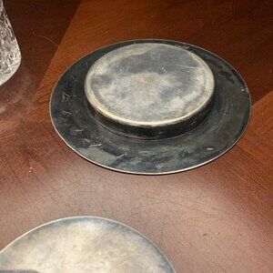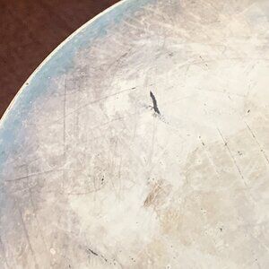 * Glass Bowl: Surface crack at the bottom center and small bubbles typical of the era's production methods