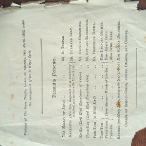 The Mikado: or The Town of Titipu, in Two Acts. Written by W.S. Gilbert. Composed by Arthur Sullivan. WM. A. Pond & Co., New York, 1885. Stapled booklet.