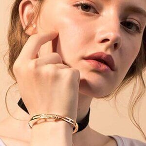 Crafted from high-quality 316L stainless steel with an elegant 18k gold plating, ★SIZE★ Inner Circumference : 7"inch (178mm). Diameter:1.9"x 2.4".