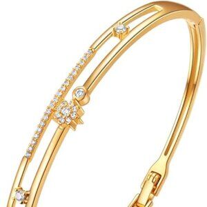 Gold Bracelets for Women, 18K Gold Plated Bangles Bracelets with Cubic Zirconia Stones Lightweight