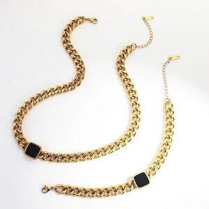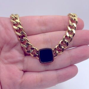 18K Gold Plated Black Enamel Cuban Chain Necklace