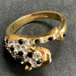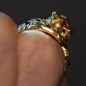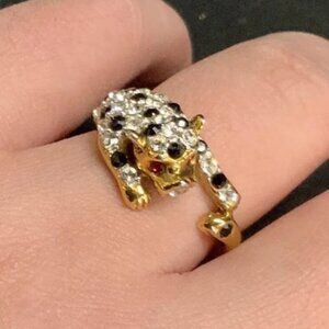 18K Gold Plated GERSC Panther Ring Cat Feline Crystals Cocktail Costume