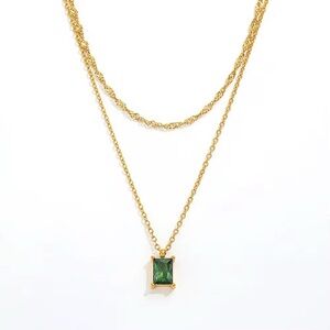 18K Gold Plated - Green Pendant Necklace - Gold Jewelry