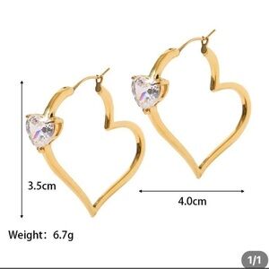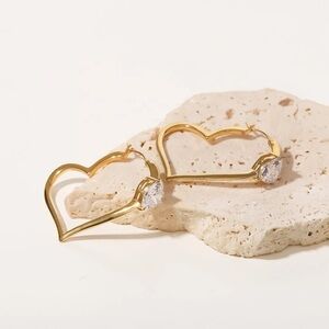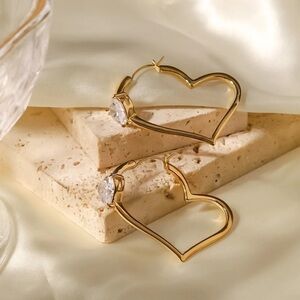 18K Gold Plated Heart Cubic Zirconia Hoop Earrings