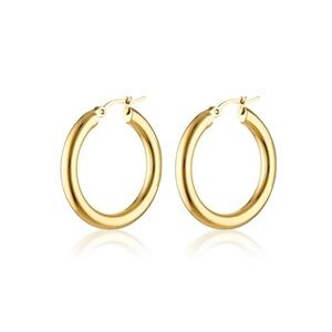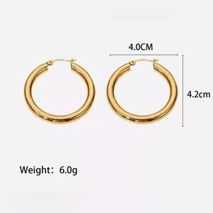 A must have piece to include in your wardrobe. High-quality materials. These hoops are thick and lightweight making it comfortable and easy to take on and off.