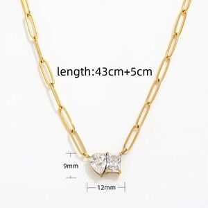 18K Gold Plated - Necklace with Heart and Square Pendants