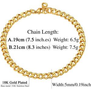 *✔Measurement: Chain Width: 5mm/0.2inch Thickness: 1.8mm Chain Length: 7.5inch/19cm You can choose the length you prefer. We use reinforced lobster claw clasp, which will not bend not break.