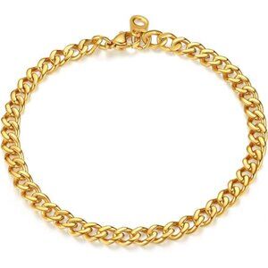 18K Gold Plated Stainless Steel Chain Bracelet Men/Women Chunky Link 5mm Width