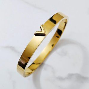 🌷 18K PVD Gold Plated Stainless Steel V Bangle - Luxury Waterproof