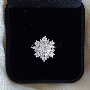 18K White Gold-Plated Simulated Diamond 925 Sterling Silver Engagement Ring